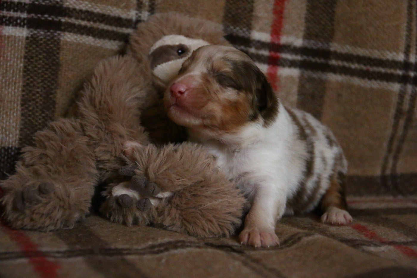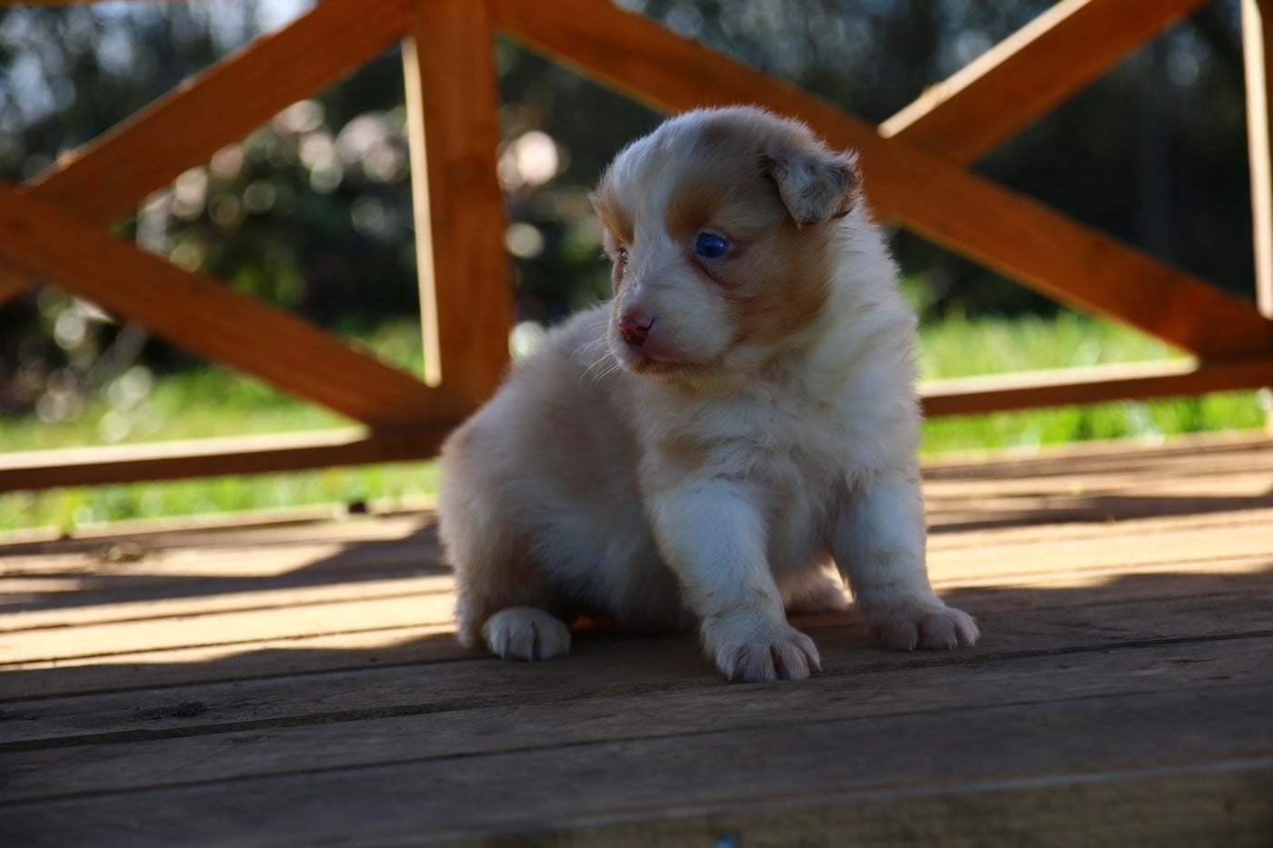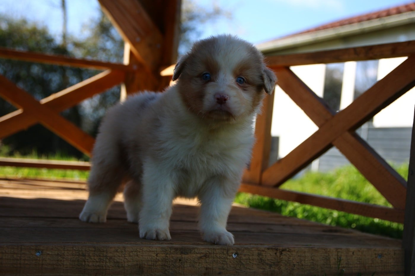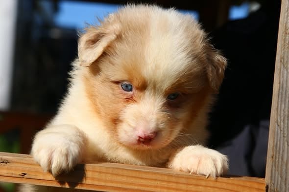 rouge merle née queue courte . une toute petite puce à la naissance avec un poids inferieur à 200gr. mais elle a une grande force de caractère et se bat comme une petite lionne. Avec sa petite tête rigolote elle ne peux que vous séduire