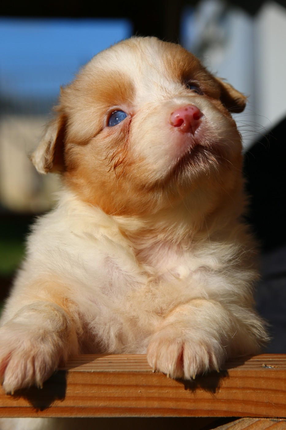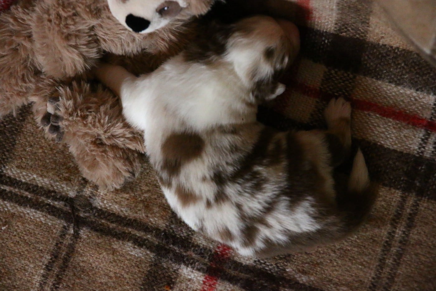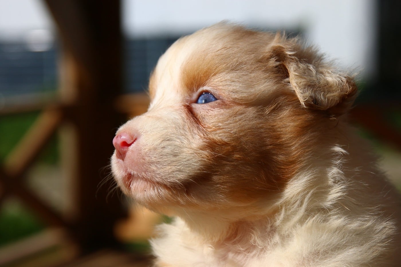 rouge merle née queue courte . une toute petite puce à la naissance avec un poids inferieur à 200gr. mais elle a une grande force de caractère et se bat comme une petite lionne. Avec sa petite tête rigolote elle ne peux que vous séduire